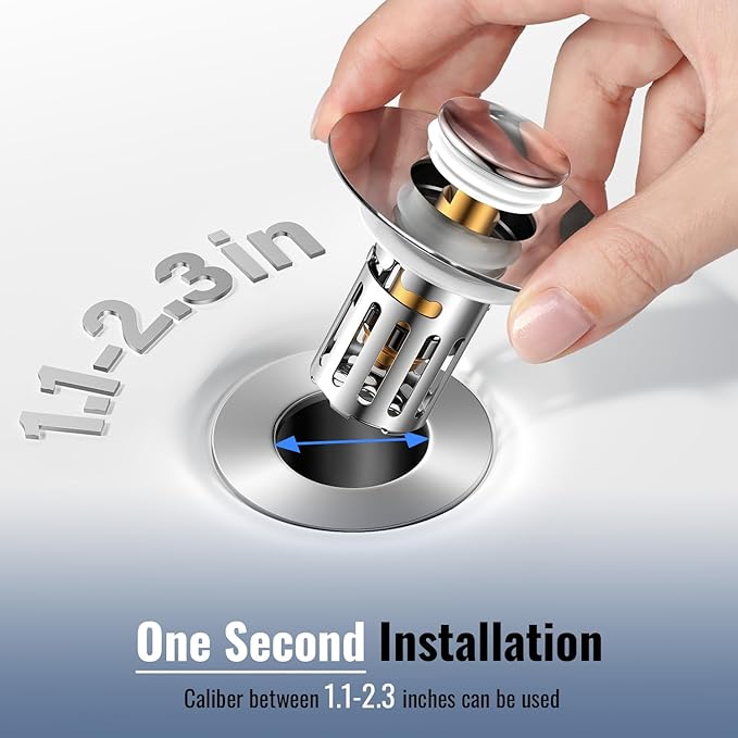 - [🔧 Tool-Free, 10-Second Installation] Forget complicated setups. Simply select the correct rubber gasket for your sink drain size, insert the stopper into the drain, and you're done! Our intuitive design requires zero tools or technical expertise, making it a perfect DIY drain strainer replacement for anyone, regardless of experience.